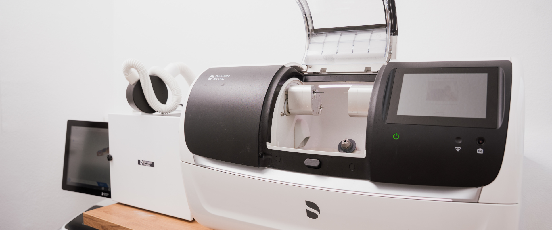 Ihr Zahnersatz wird danach vollautomatisch aus einem Zahnkeramikblock gefräst. Der unangenehme Abdruck mit Silikonmasse entfällt hier, ebenso wie das Tragen eines Provisoriums, da Sie in der Regel bereits nach einer Sitzung mit Ihrem individuellen Zahnersatz die Praxis verlassen dürfen.